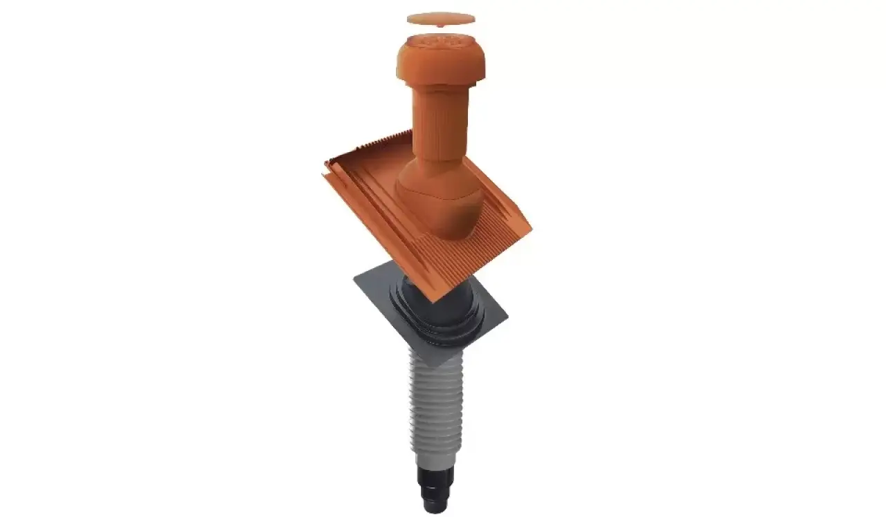 Be- und Entlüftung am Steildach: einfach, gut und schön. Einfach, weil die universelle Set-Lösung vom Be- und Entlüfterrohr mit Haube über die universelle Grundplatte und die Dunstrohrmanschette bis zum Flex-Anschlussschlauch für die flexible Anbindung an das Dunstrohr komplett ist. Gut, weil die aerodynamisch optimierte Rohrgeometrie in Verbindung mit Luftleitring und Regenhaube Verwirbelungen auf ein Minimum reduziert und eine effektive Abluftleistung sicherstellt. Und schön, weil es das Set in der Nennweite DN 110 passend zu den gängigen Bedachungsfarbtönen in Anthrazit, Dunkelbraun und Rot gibt und anders als bei bleihaltigen Universalpfannen keine Auswaschungen entstehen.