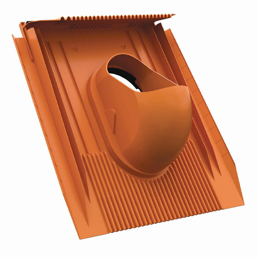 Die Venduct Universelle Grundplatte dient der regensicheren Durchführung von Lüftungsleitungen, Antennendurchgängen oder Abgasrohren. Selbst Durchdringungen im Reihenversatz sind schnell und unproblematisch umzusetzen. Die flexible Grundplatte passt sich durch die obere und untere Plissierung an die jeweilige Pfannenform an und fügt sich mit den formbaren, seitlichen Passstreifen in die Deckung ein. Die universelle Einsetzbarkeit reduziert Lagerbestand und macht komplizierte Lösungen, z.B. mit Blei, unnötig.