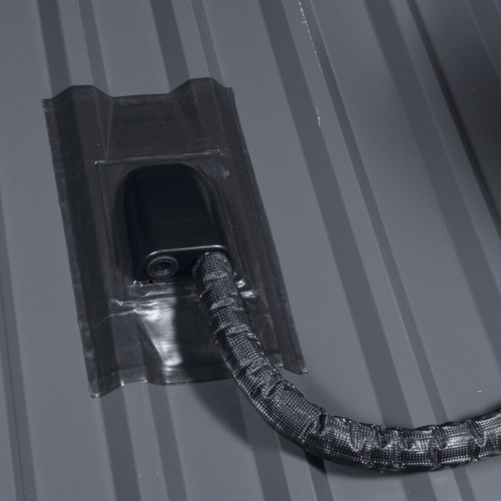 Die Universal Solardurchführung dient der regensicheren Durchführung von Kabeln und Leitungen von Photovoltaik- und Solarthermieanlagen auf Metalldachprofilen.