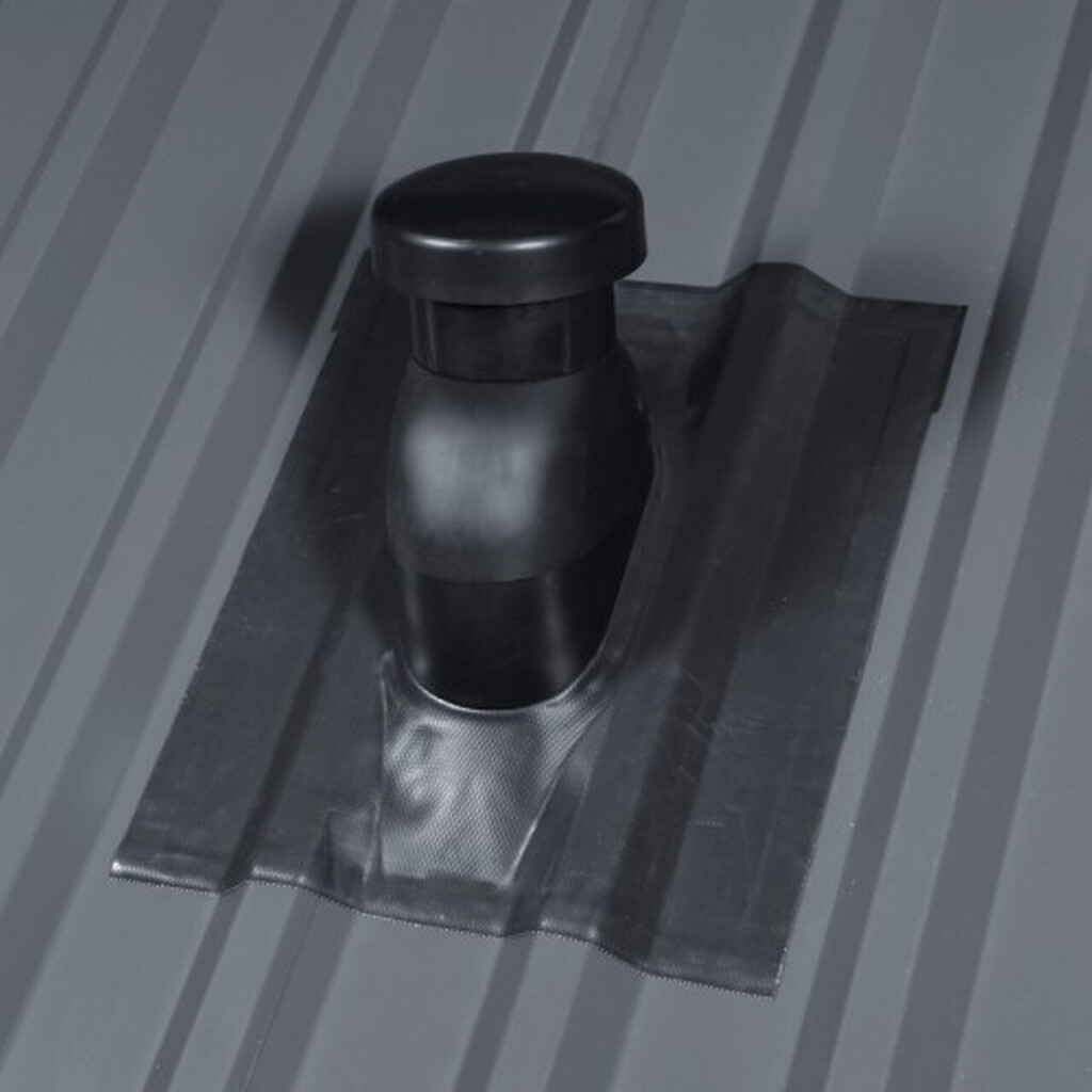 Das Set beinhaltet die Universal Lüfterhaube inkl. Dicht- und Montagekleber und Profilfüllern sowie einen hochwertigen Weich-PVC Flex-Anschlussschlauch zum Anschluss an DN 110/90/75. Geeignet sowohl zur Strangentlüftung bzw. Raum Be-/Entlüftung auf Metalldachprofilen. Das Lüfterrohr ist aus verzinktem Stahl und wärmegedämmt. Aufgrund der selbstklebenden Manschette kann die Durchführung schnell und ohne Spezialwerkzeug mit der Metalloberfläche verklebt werden, eine zusätzliche mechanische Verschraubung ist nicht notwendig. Die flexible Manschette ermöglicht den Einsatz auf verschiedenen Metalldachprofilen (z.B. Trapez- oder Sandwichprofile).