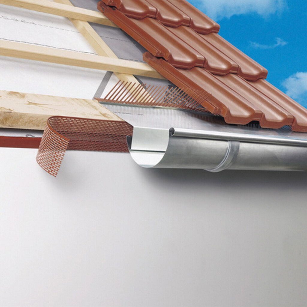 Klöber Lüftungsbänder aus Spezial-PVC ermöglichen durch die Lochbildoptimierung aus versetzt angeordneten Langlöchern einen hohen Belüftungswert (DIN 4108-3, 50% Lochanteil) und bieten gleichzeitig Schutz gegen einfliegende Insekten und das Einnisten von Vögeln. Hochflexibel und gegen Stöße und Schläge bestens geschützt, lassen sich aufgerollte Klöber Lüftungsbänder einfach transportieren, bedarfsgerecht zuschneiden und montieren.