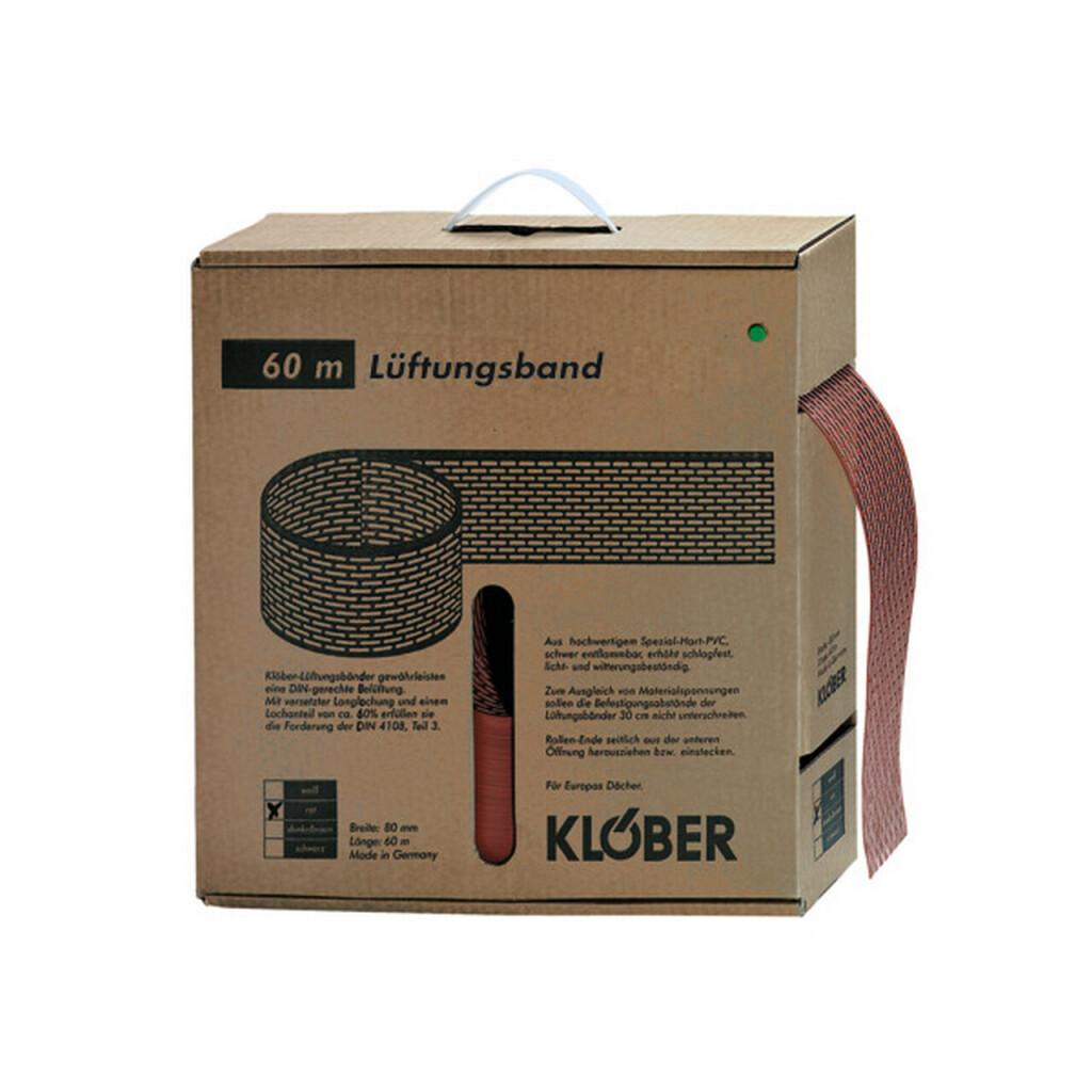 Klöber Lüftungsbänder aus Spezial-PVC ermöglichen durch die Lochbildoptimierung aus versetzt angeordneten Langlöchern einen hohen Belüftungswert (DIN 4108-3, 50% Lochanteil) und bieten gleichzeitig Schutz gegen einfliegende Insekten und das Einnisten von Vögeln. Hochflexibel und gegen Stöße und Schläge bestens geschützt, lassen sich aufgerollte Klöber Lüftungsbänder einfach transportieren, bedarfsgerecht zuschneiden und montieren.